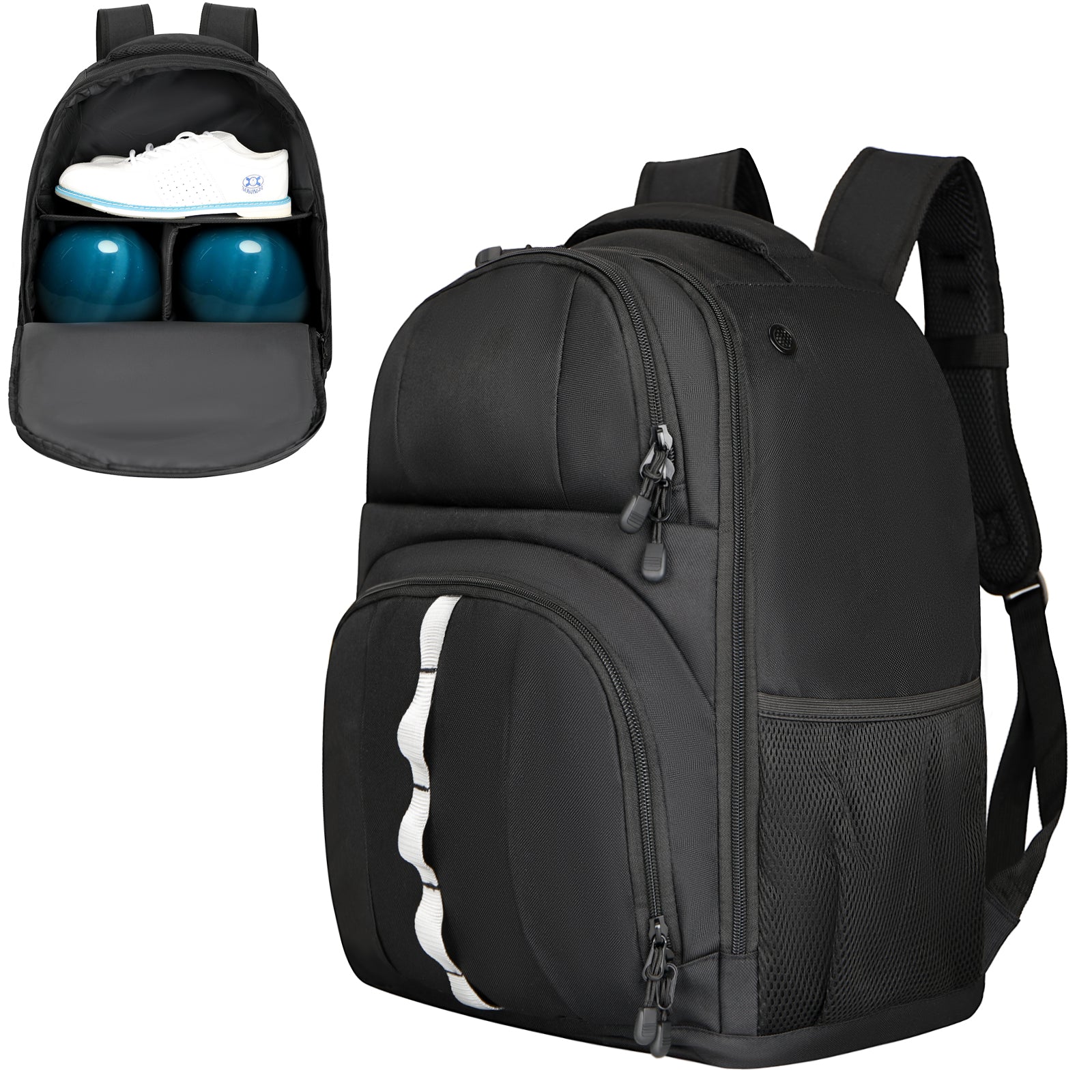 - BACKPACK WITH SHOE COMPARTMENT:The top shoe compartment of the mens bowling ball bag can easily accommodate a pair of size 16 bowling shoes, and two breathable holes can help reduce the odor generated by the shoes and keep them dry. Detachable PVC bottom for easy cleaning. When shoes are not needed, the PVC bottom can be removed to flexibly adjust the layout inside the bag. It can be used not only as a bowling bags, but also as a sports bag, travel bag, soccer bag, basketball bag