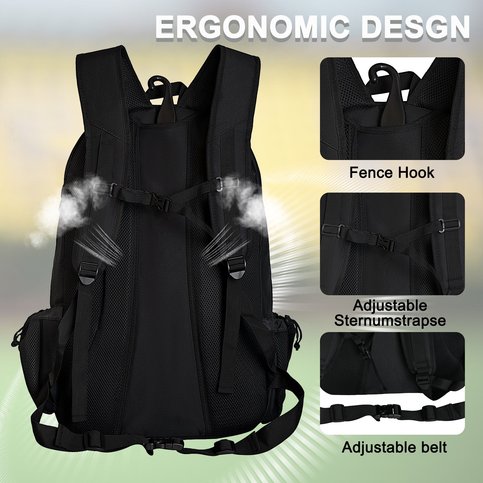 【FITS ALL GEAR】This lacros(Fits all gear)This lacrosse bag measured in 12.4*9.8*18.9 inches, Can fit 2 lacrosse sticks (all sizes), helmet / face mask, shoulder pads, arm / elbow pads, gloves, goggles, cleats & MORE.se bag measured in 12.4*9.8*18.9 inches, Can fit 2 lacrosse sticks (all sizes), helmet / face mask, shoulder pads, arm / elbow pads, gloves, goggles, cleats & MORE. 【Durable materials】 The whole lacrosse bag made from 600D high-density polyester fabric for lasting durability. With wear resistant and good quality zipper. 【multi-purpose】 Designed as a lacrosse backpack, but also perfect for field hockey, hockey, football, and more! 【Ergonomic designed and easy to carry】 Ergonomic backpack straps & air mesh padded back with adjustable sternum strap and hip belt, can reduce the pressure to the body more effectively and it bring you warm care. It only weighs 0.94 kg [100%satisfaction guaranteed] Goloni is highly committed to every customer. We stand behind our products and customers. If you have any dissatisfaction with our product, please get in touch with us anytime, we will provide you with a 100% satisfaction solution.
