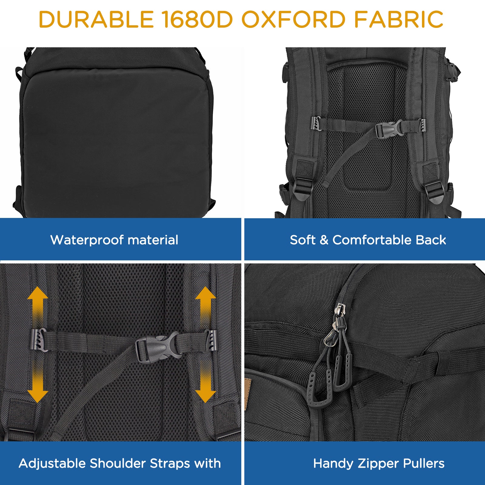 - Comfortable and Adjustable:The ergonomic backboard can reduce pressure on the back and shoulders, and the soft lining can also prevent boots from hitting your back.All straps are adjustable to better fit your body and prevent the ski backpack from swaying left and right.
