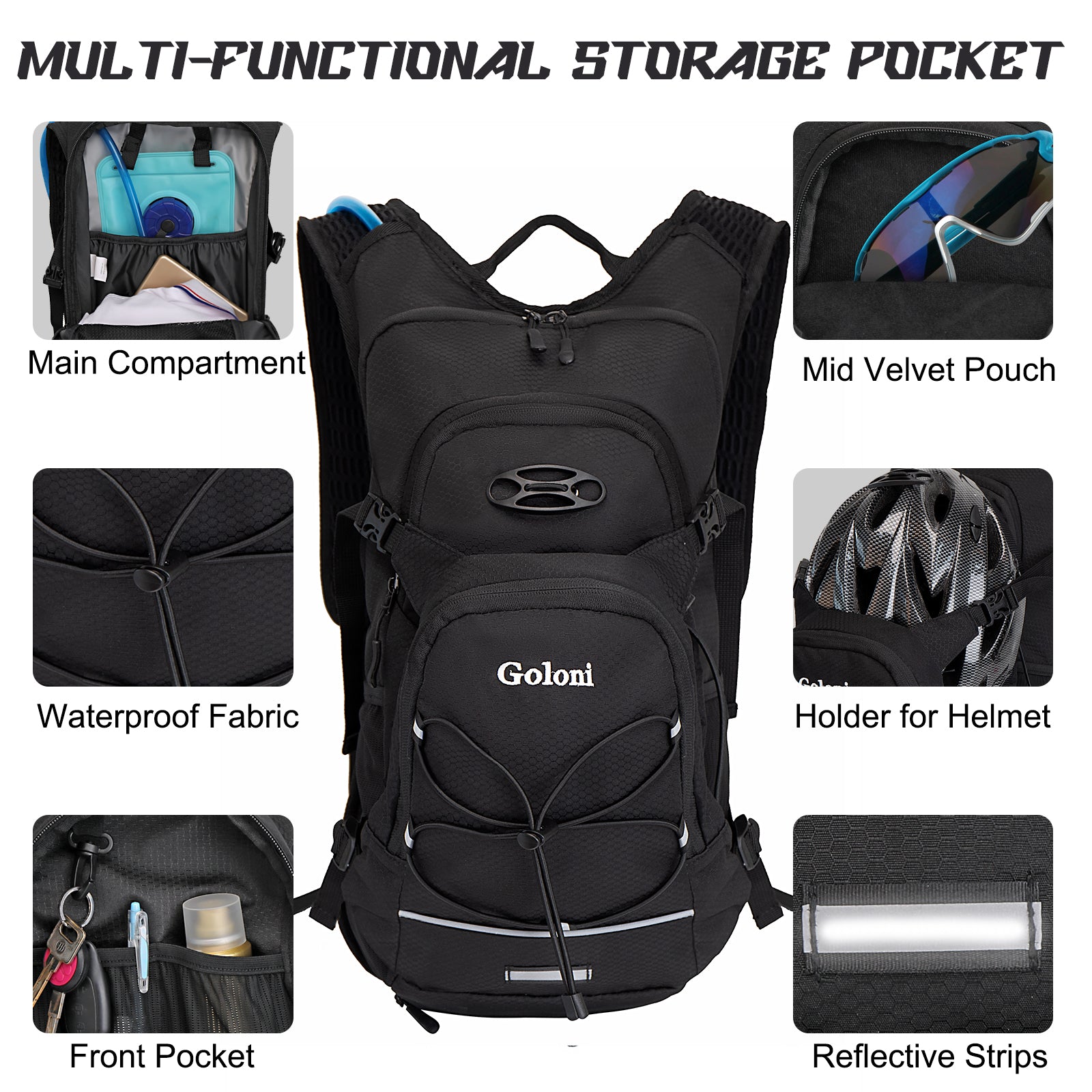- Perfect hiking gear:Goloni running backpack is suitable for any outdoor activity.Whether you're hiking, camping, or running, this water proof backpack can meet all your needs.The included 2L bladder ensures you have plenty of water on the go, while the small size makes it easy to carry even when you're on the move